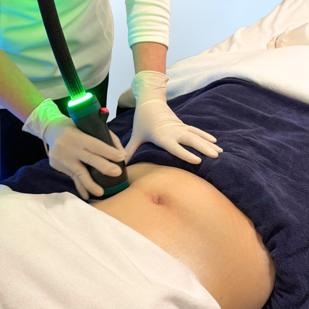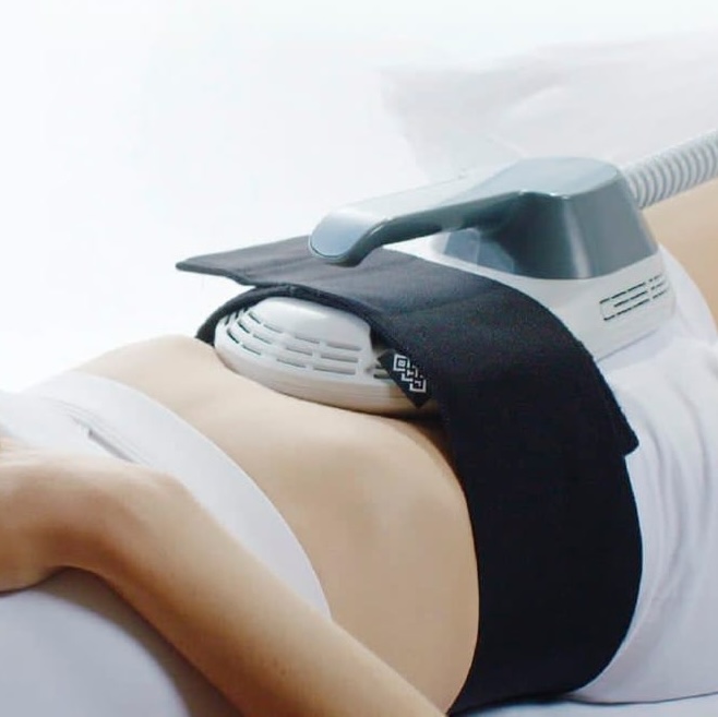The HI-EMT emits electromagnetic pulses targeted to strengthen your muscle fibers and burn unwanted fat. When muscle tissue is exposed to a high level of supramaximal contractions, it causes the muscles to release chemicals that tell fat cells in that area to break down.
