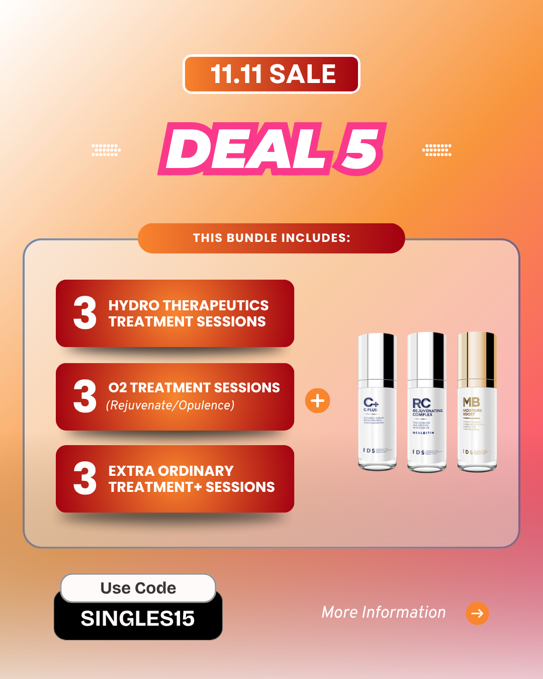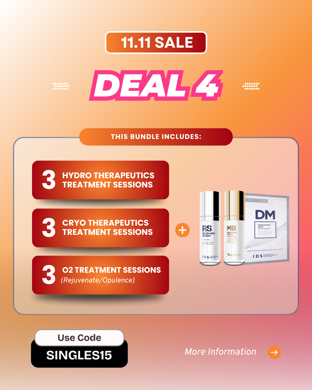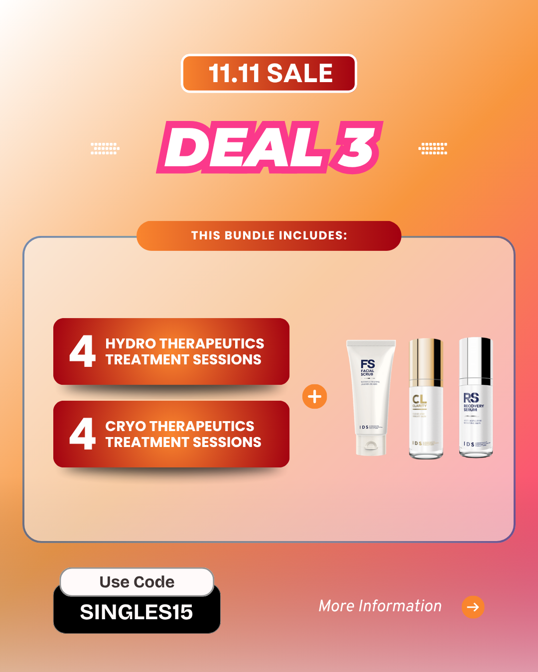 Promotion Period: Promotion Period: The Singles' Day promotions are valid for facial treatment bundle purchases made between 4th November and 12th November 2025 only.